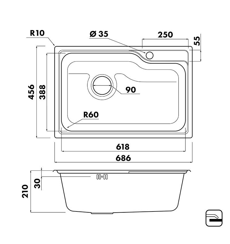 • Размер мойки: 686x456